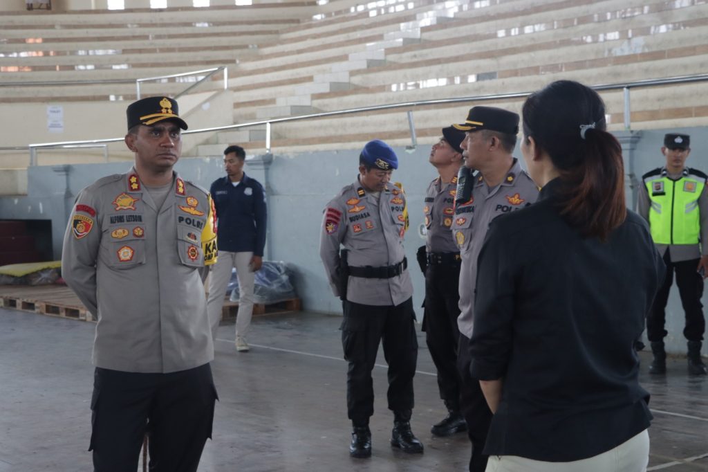 Kapolres Klungkung AKBP Alfons W.P Letsoin,S.I.K., menyampaikan pengecekan gudang logistik Pilkada serentak 2024 yang dipergunakan oleh Komisi Pemilihan Umum (KPU) Klungkung, di di Gor Swecapura Desa Gelgel Kec. Kab Klungkung