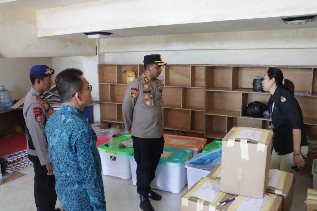 Kapolres Klungkung AKBP Alfons W.P Letsoin,S.I.K., bersama Kabag Ops Kompol I Ketut Suastika,Kapolsek Klungkung Kompol I Gusti Putu Dharmanatha, Kasat Intelkam Akp I Nyoman Sukarma beserta PJU Lainnya melakukan pengecekan gudang logistik Pemilihan Kepala Daerah (Pilkada) serentak 2024 pada Operasi Mantap Praja Agung 2024.