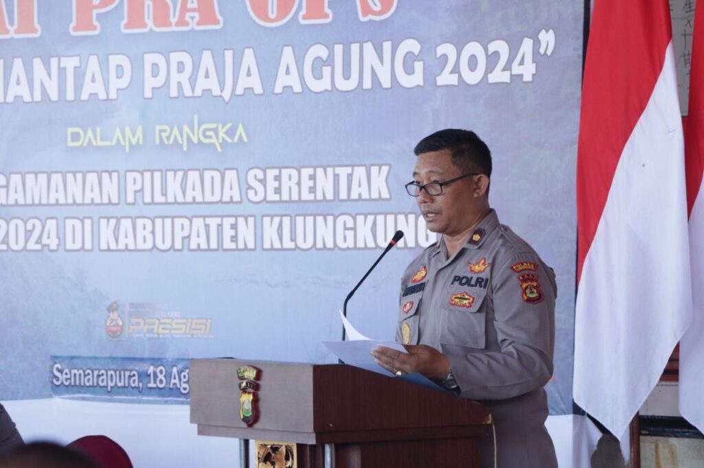 Polres Klungkung Menggelar Lat Pra Ops “Operasi Mantap Praja Agung 2024” Dalam Rangka Pengamanan Pilkada Serentak Tahun 2024 di Kabupaten Klungkung bertempat di Aula Vihara Dharma Ratna, Pada Minggu, 18 Agustus 2024.