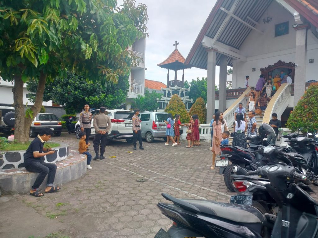 Personel disiagakan sejak jemaat mulai berdatangan hingga ibadah selesai. Selain menjaga keamanan di lingkungan gereja, petugas juga melakukan pengaturan lalu lintas untuk memberikan kenyamanan bagi masyarakat sekitar.