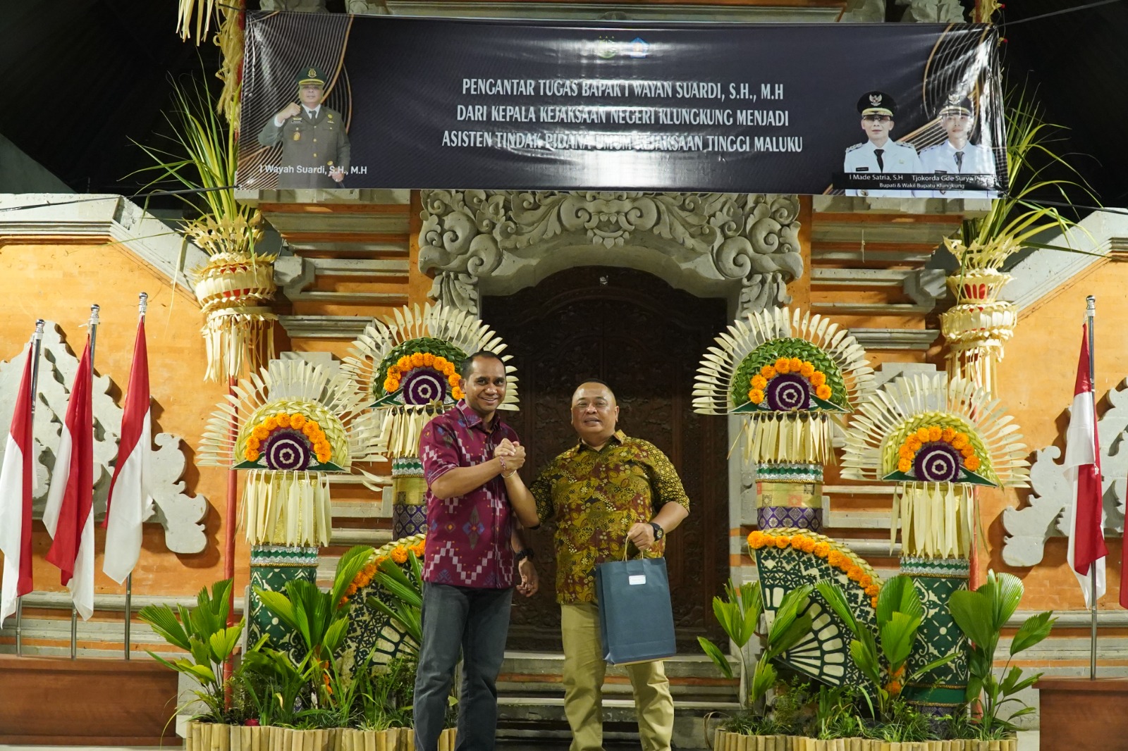Polres Klungkung – Plt. Kapolres Klungkung AKBP Alfons W. P. Letsoin, S.I.K. menghadiri Acara Pengantar Tugas Bapak I Wayan Suardi, S.H., M.H., yang sebelumnya menjabat sebagai Kepala Kejaksaan Negeri Klungkung dan mendapat promosi jabatan sebagai Asisten Tindak Pidana Umum Kejaksaan Tinggi Maluku, (8/1).