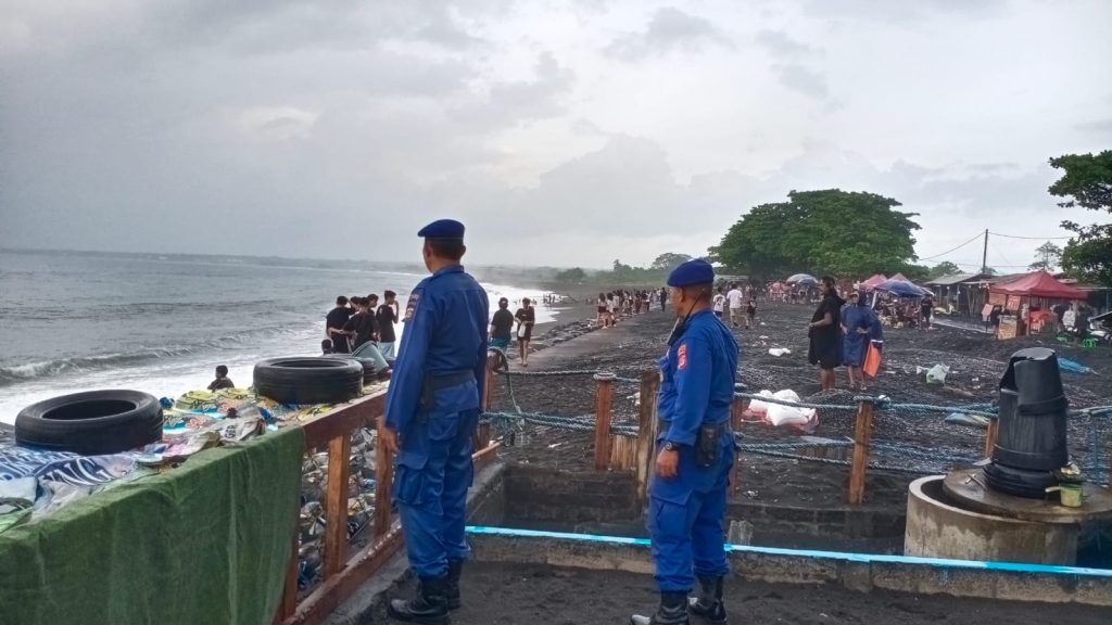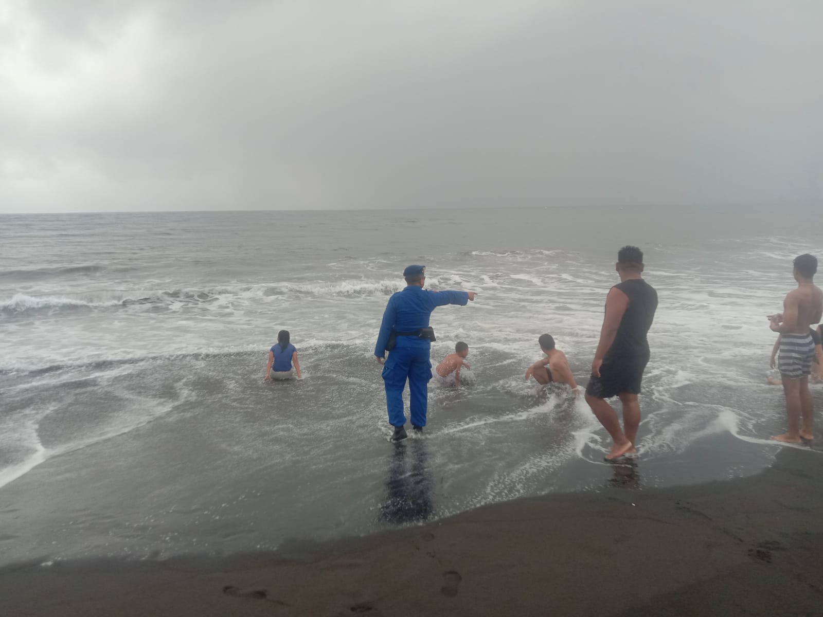 Juga tetap mengimbau masyarakat agar tetap waspada dan berhati hati terhadap arus air dan gelombang laut saat beraktivitas di bibir pantai.