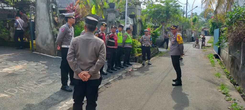 Polres Klungkung dalam Operasi Mantap Praja Agung 2024 lakukan pengamanan di kediaman calon Bupati Klungkung, I Made Kasta dan keluarga, yang berlokasi di banjar Sangging, Desa Akah, Klungkung (3/10/2024).