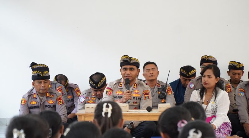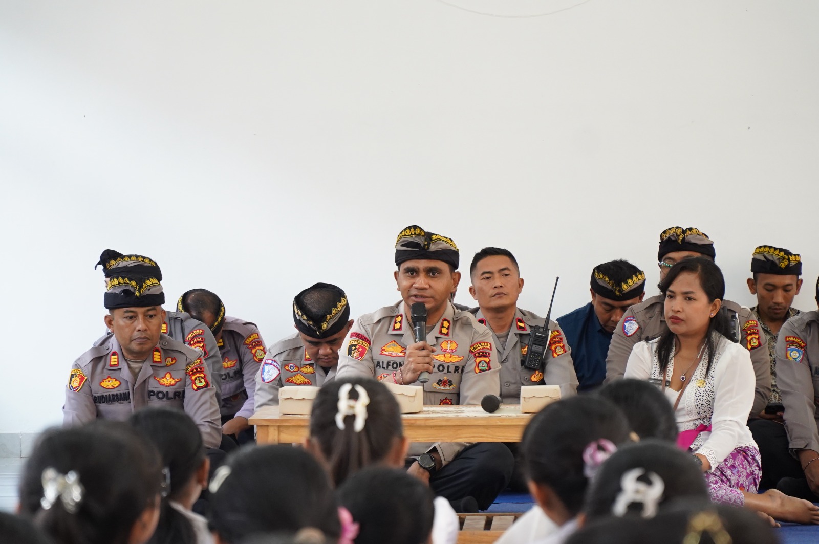 Kegiatan tersebut dipimpin langsung oleh Kapolres Klungkung AKBP Alfons W P Letsoin, S.I.K., didampingi Kapolsek Banjarangkan AKP I Ketut Budiarsana, S.H., M.H., jajaran PJU Polres Klungkung, serta dihadiri juga oleh Kepala Sekolah, dewan guru, staf, dan seluruh siswa SMP Negeri 4 Banjarangkan.
