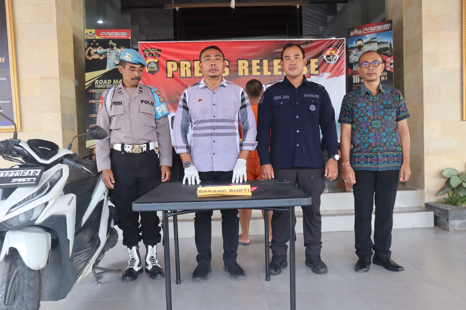Seijin Bapak Kapolres Klungkung AKBP Alfons W P Letsoin, S.I.K., Kasat Narkoba AKP I Wayan Gede Mudana, S.H., M.H., yang didampingi Kanit Sidik Sat Res Narkoba Ipda I Ketut Sanjaya, S.H dan mewakili Kasi Humas PS Kasubsi Penmas Aipda Nyoman Wira Juliantara menggelar release pengungkapan kasus Narkoba di Loby Aula Jalaga Dharma Pandhapa Polres Klungkung (10/4/2025).