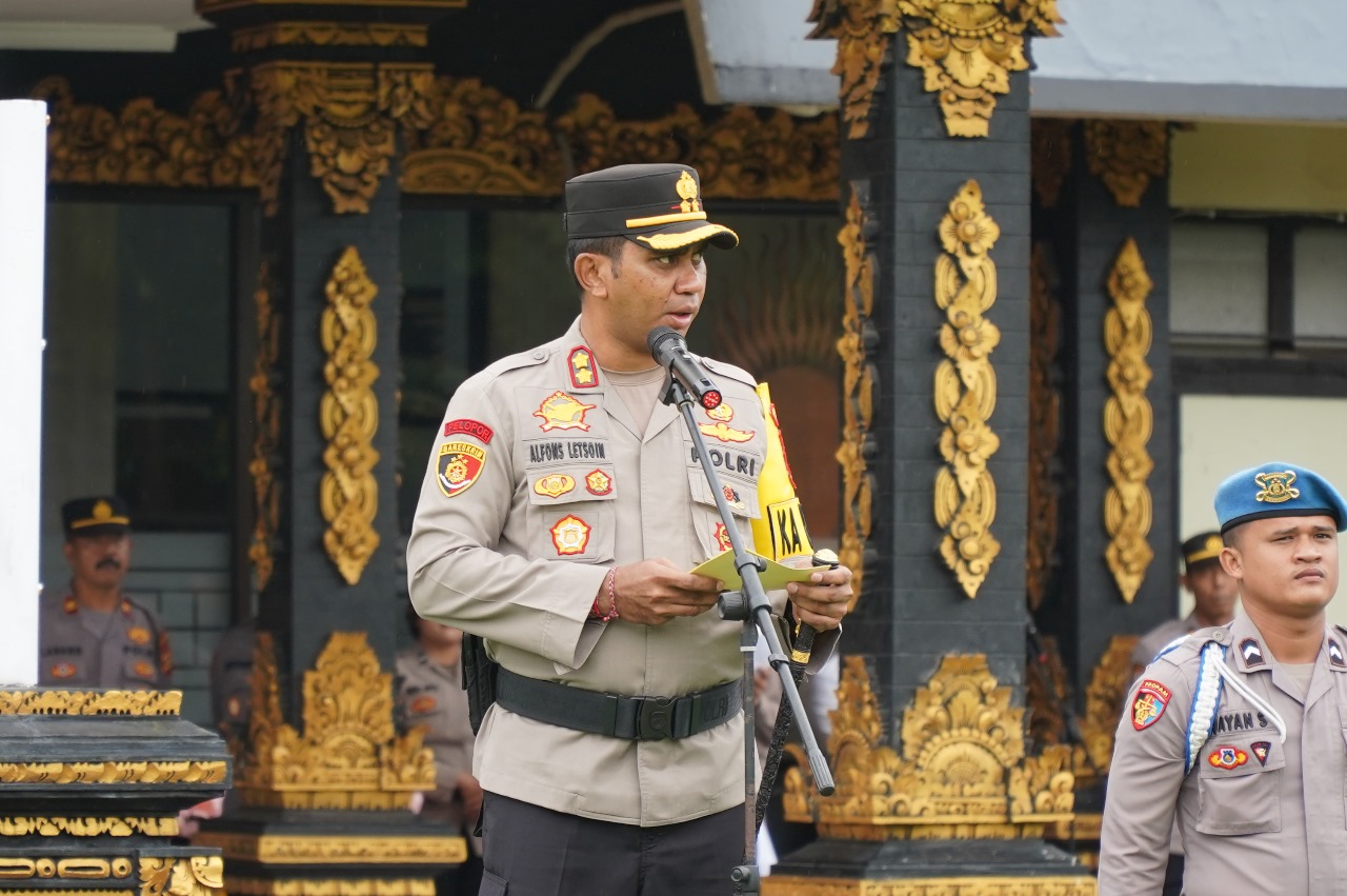 Kapolres Klungkung AKBP Alfons W P Letsoin, S.I.K., selaku inspektur upacara dalam amanatnya menyampaikan bahwa kegiatan ini pada hakekatnya merupakan acara rutin dalam rangka pemberian piagam penghargaan kepada anggotanya yang melaksanakan tugas dengan cukup baik, sebagai pelindung, pengayom, dan pelayan masyarakat.