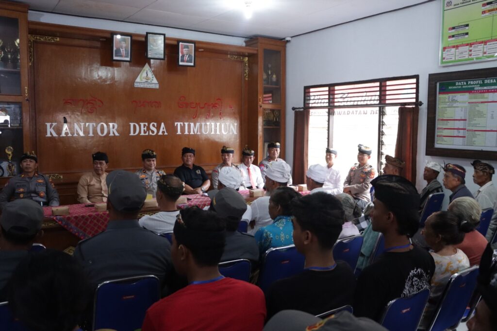 Kegiatan diawali dengan sambutan dari Perbekel Desa Timuhun menyampaikan terima kasih atas kunjungan Bapak Kapolres Klungkung yang diwakili oleh Bapak Wakapolres di Desa Timuhun serta menyambut baik acara ini.