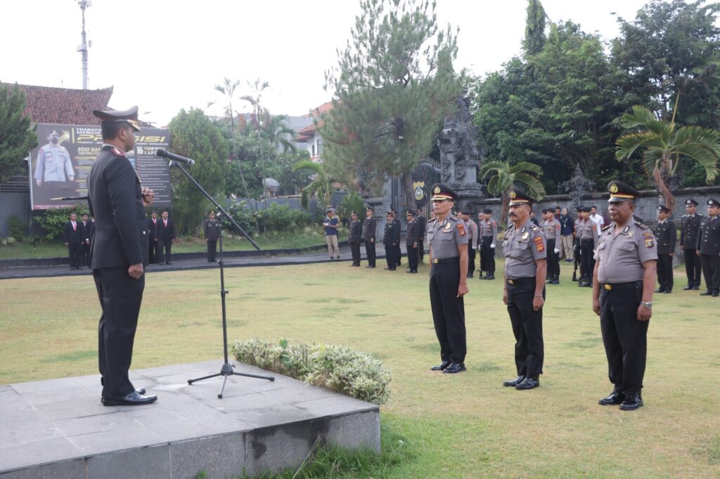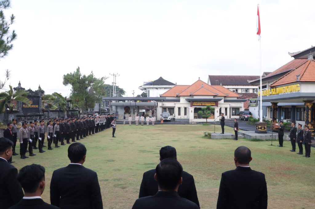 Polres Klungkung melaksanakan upacara peringatan Hari Kesaktian Pancasila yang dirangkaikan dengan Laporan Korp Kenaikan Pangkat Perwira Pengabdian, pemberian piagam penghargaan dan pelepasan Purna Bakti yang dilaksanakan di Lapangan Apel Polres Klungkung (1/10/2024).