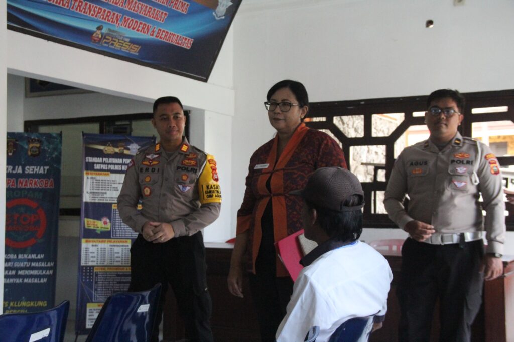 Selain Kabag Ren hadir juga dalam kegiatan tersebut antara lain Kasat Lantas Polres Klungkung AKP Made Erdiana Putra, Kasat Intelkam I NYoman Sukarma, Anggota Kasiwas, serta Kanit Regident Polres Klungkung, serta personel yang mengawaki pelayanan di SKCK dan SIM.