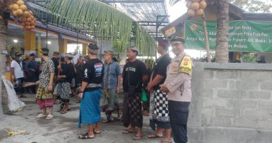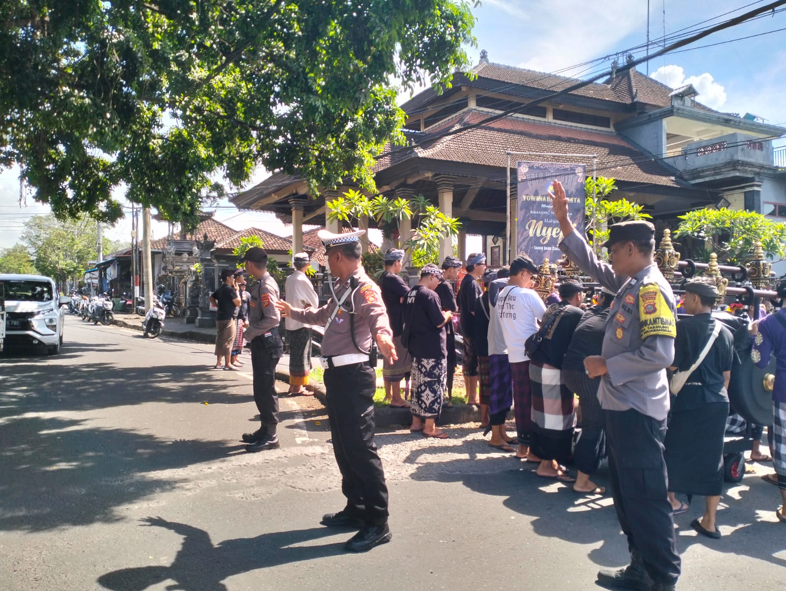 Personel Unit Lantas dan bintara remaja yang dipimpin oleh Kanit Lantas Aiptu I Nengah Katon bersama Bhabinkamtibmas Desa Takmung Aiptu I Wayan Kariasa serta pecalang desa adat melaksanakan pengamanan untuk kelancaran kegiatan ini.
