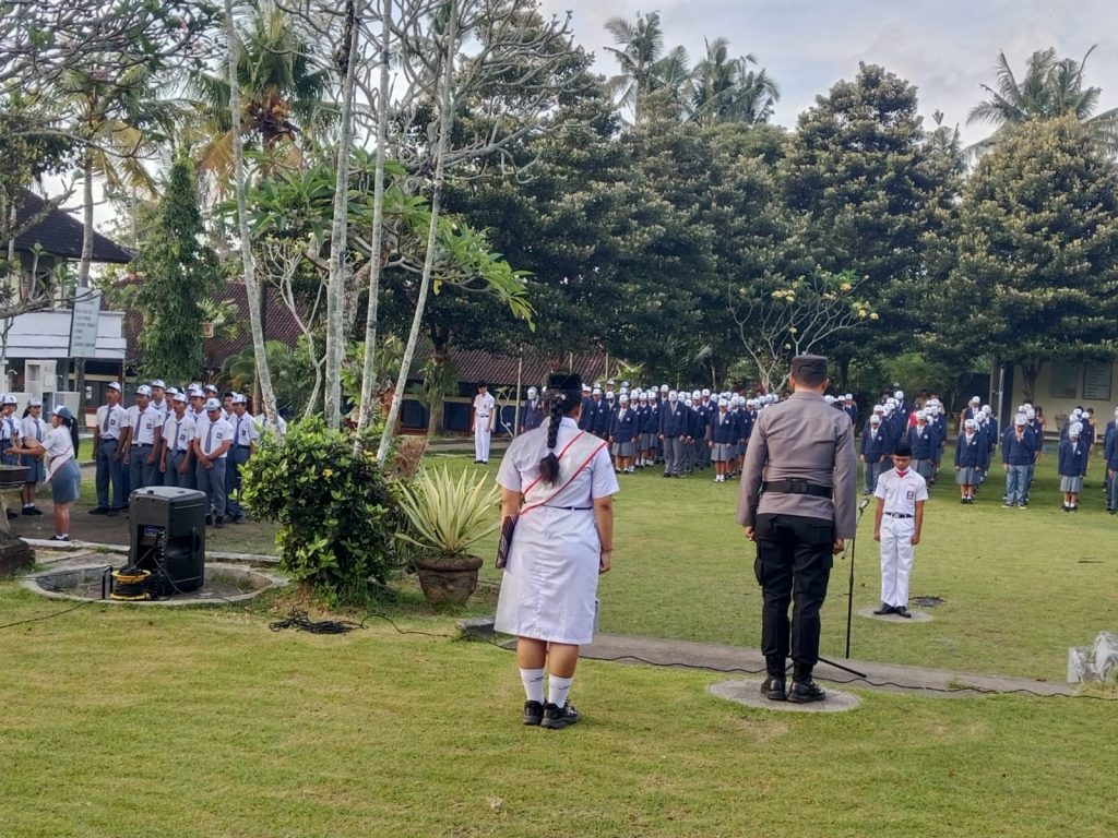 Polres Klungkung – Upaya Polri dalam memberikan edukasi hukum sejak dini terus digencarkan. Kanit Reskrim Polsek Banjarangkan, Ipda Idab Bagus Seloka, bersama Bhabinkamtibmas Desa Tusan, Aiptu Dewa Gede Rai Hendrawan, melaksanakan kegiatan Police Goes to School di SMP Negeri 1 Banjarangkan, (8/9).