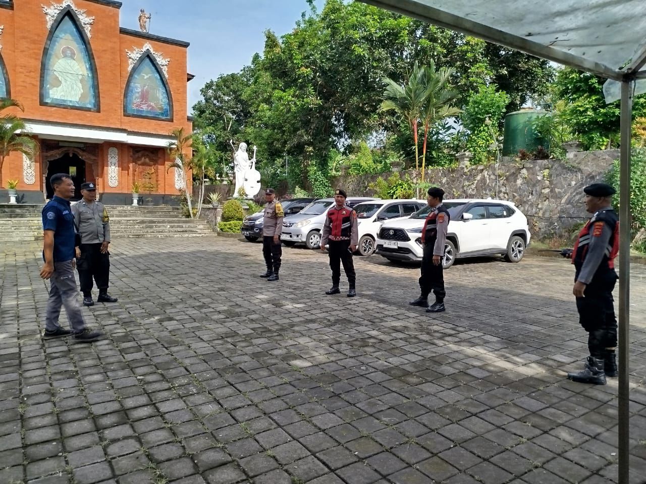 Personel ditempatkan di titik-titik strategis, mulai dari akses masuk gereja, area parkir, hingga pemantauan lingkungan sekitar.