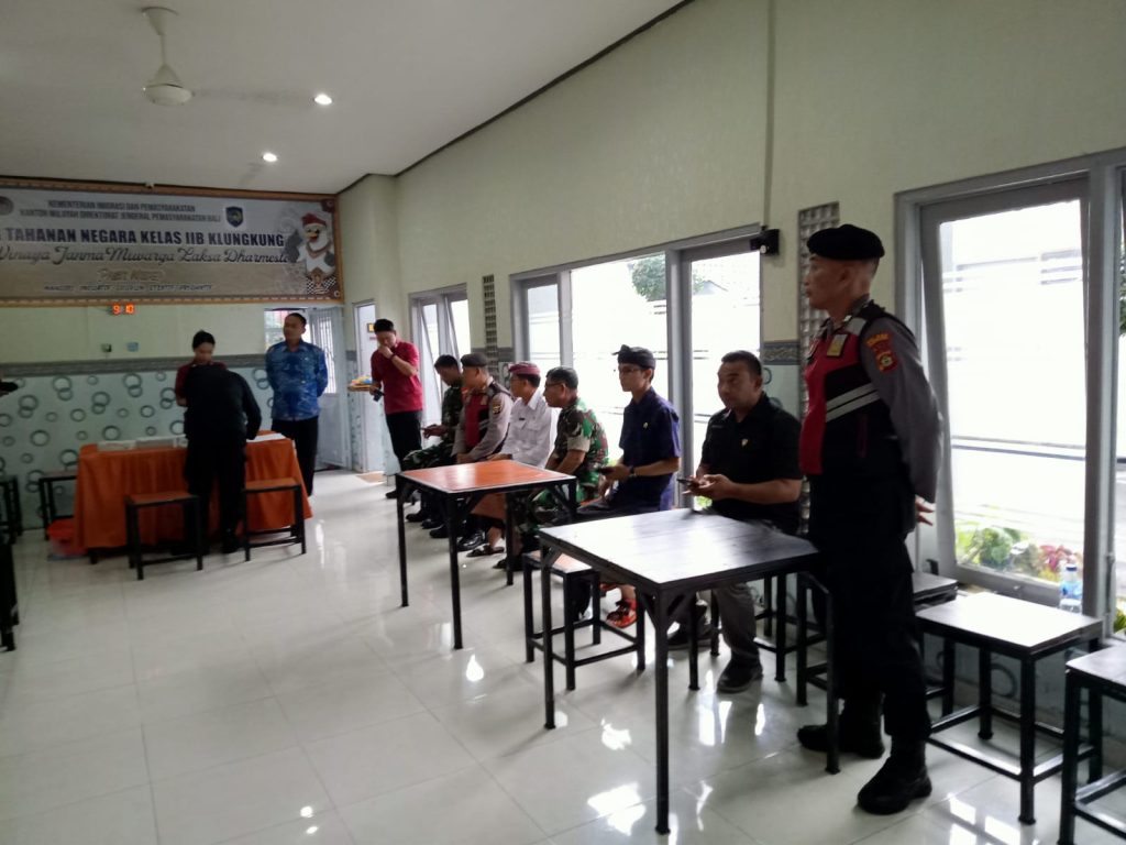 Dalam pengamanan, personel Polsek Klungkung turut memantau setiap sudut area rutan dan menjalin komunikasi aktif dengan seluruh pihak yang terlibat demi memastikan tidak terjadi gangguan keamanan selama kegiatan berlangsung.