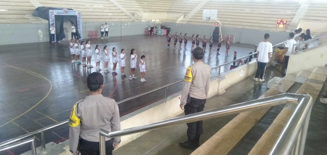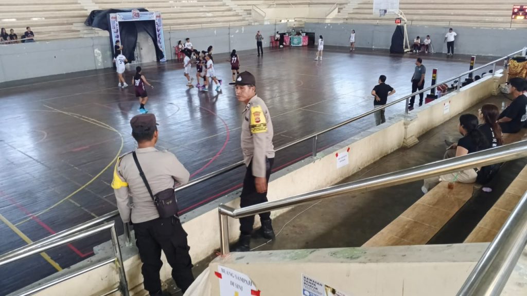 Polres Klungkung – Personel Polsek Klungkung melaksanakan pengamanan kegiatan Semadara Basketball League SMP se-Bali yang berlangsung di GOR Swecapura, Desa Gelgel, Klungkung, (1/10).