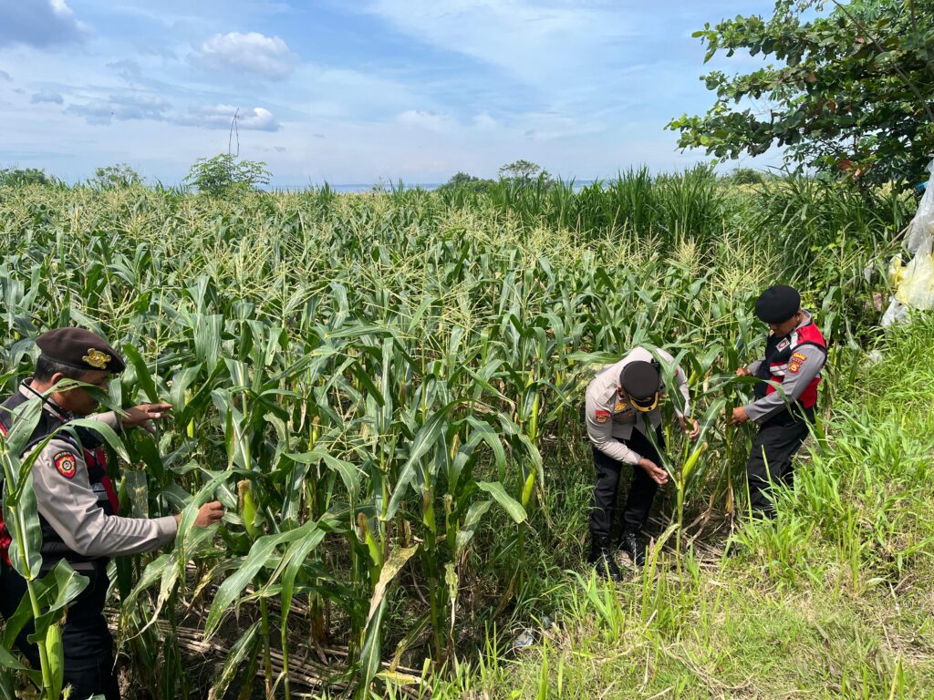 Polsek Klungkung Lakukan Pemeliharaan Tanaman Jagung di Desa Gelgel.
