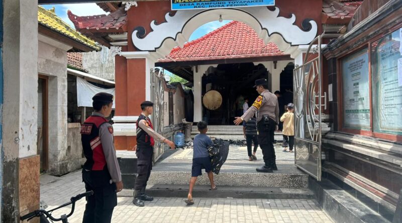 Polres Klungkung – Personel Polsek Nusa Penida melaksanakan pengamanan pelaksanaan Sholat Jumat di Masjid Al Imron, Kampung Toyapakeh, Kecamatan Nusa Penida, Kabupaten Klungkung,(9/1).