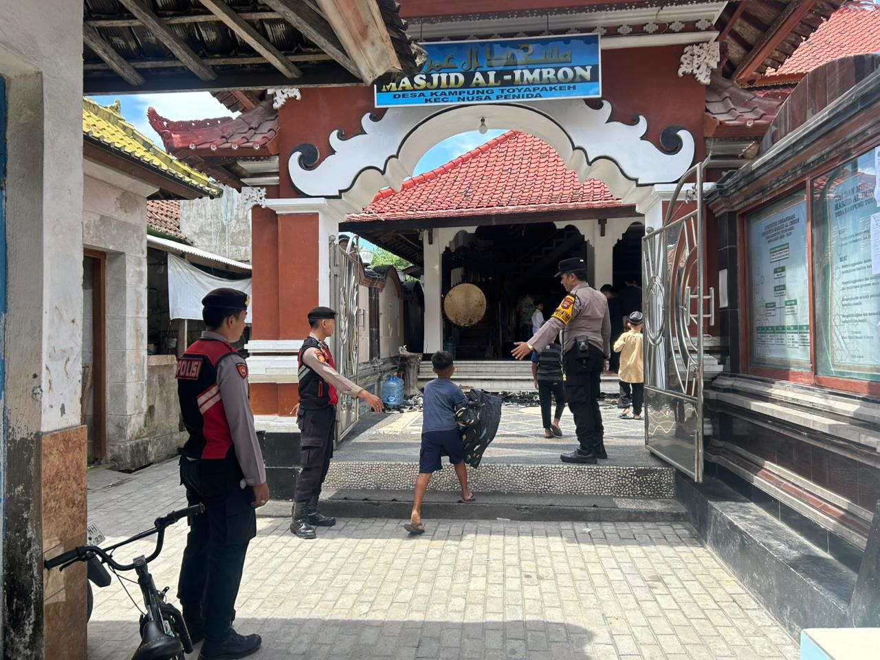 Polsek Nusa Penida Amankan Pelaksanaan Sholat Jumat di Masjid Al Imron Toyapakeh.