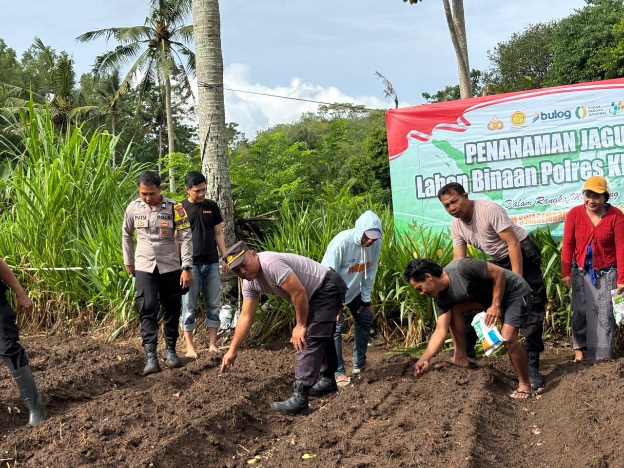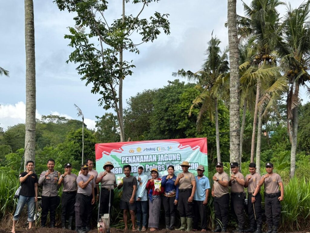 Polres Klungkung – Polsek Nusa Penida melaksanakan kegiatan penanaman jagung di lahan milik warga, I Nyoman Sukadana, di Banjar Pangkung Gede, Desa Batumadeg, Kecamatan Nusa Penida, Klungkung, (28/4).
