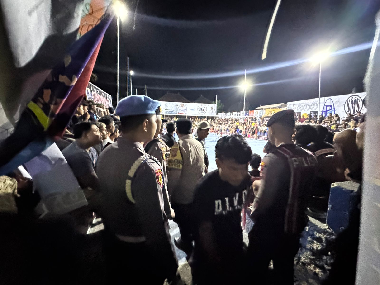 Pengamanan dilakukan secara terpadu dengan melakukan pemantauan di sekitar area pertandingan, pengaturan penonton, serta antisipasi terhadap potensi gangguan kamtibmas selama kegiatan berlangsung.