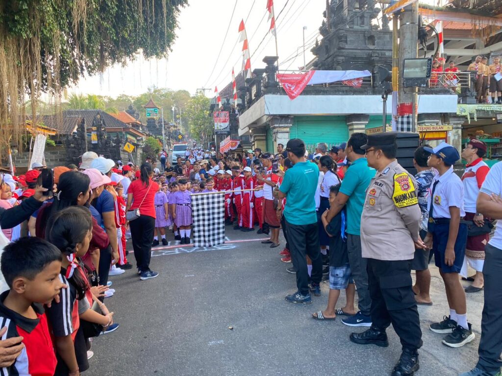 Personel Polsubsektor Lembongan bersama Bhabinkamtibmas Desa Lembongan Bripka I Wayan Suwistra melaksanakan kegiatan pengamanan lomba gerak jalan tingkat TK sampai dengan SMA di Desa Lembongan, Nusa Penida, Klungkung. (14/8/2024)