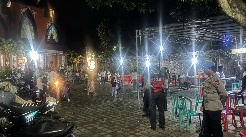 Selain melakukan patroli, personel Satuan Samapta juga melaksanakan pengamanan kegiatan ibadah sabtu vigili Paskah di Gereja Stasi Santa Sisilia, Klungkung.