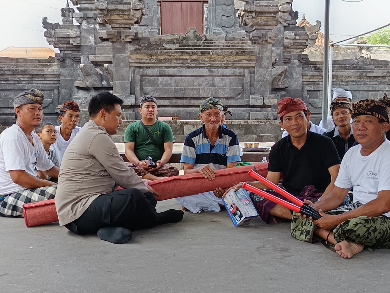 Dalam sambutannya, Kanit Bimkamsa Polres Klungkung Aiptu I Gusti Putu Suarjana menyampaikan terima kasih kepada pengelingsir dan pengempon Pura Ibu Cameng atas sambutan hangat dan kerja sama yang terjalin baik.