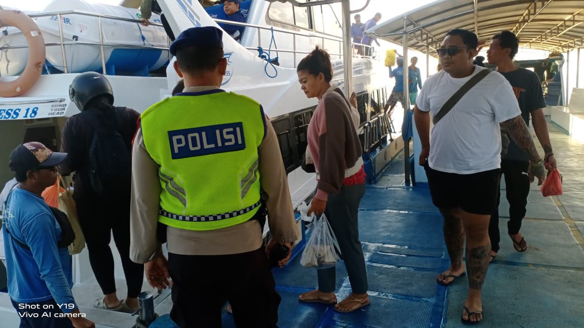 Satgas Banops Subsatgas Polair Laksanakan Patroli dan Imbauan di Pelabuhan Gangga Ekspress Kusamba