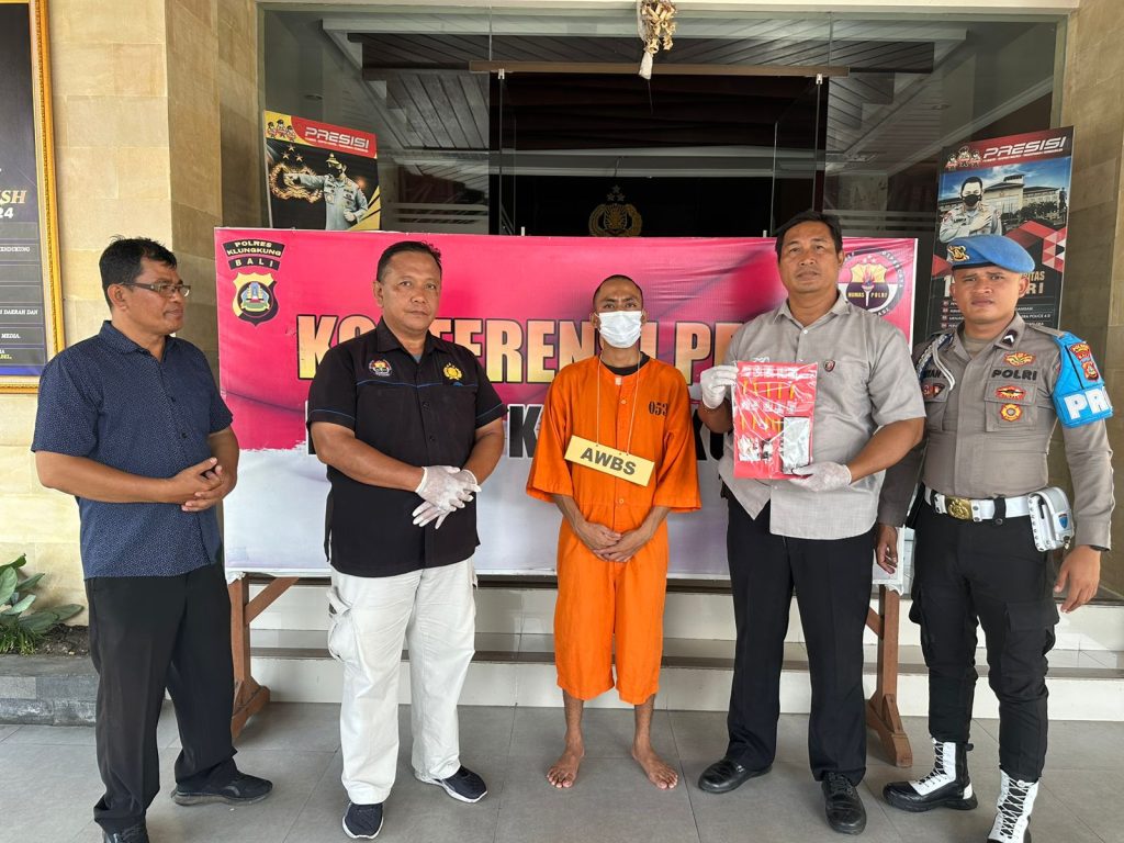 Dalam kegiatan press release atas Seijin Bapak Kapolres Klungkung dipimpin langsung oleh Kasat Narkoba AKP I Made Gede Sudarta, S.H. didampingi Kasi Humas Iptu Agus Widiono,S.H., kegiatan press release dilaksanakan di Loby Aula Jalaga Dharma Pandhapa Polres Klungkung, atas hasil pengungkapan kasus Narkoba pada bulan November 2024 dengan 1 (satu) tersangka laki-laki dengan inisial : ABWS, sudah pernah di hukum dalam kasus yang sama (residivis).(15/11/2024)