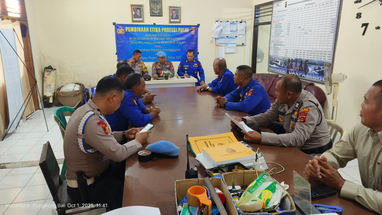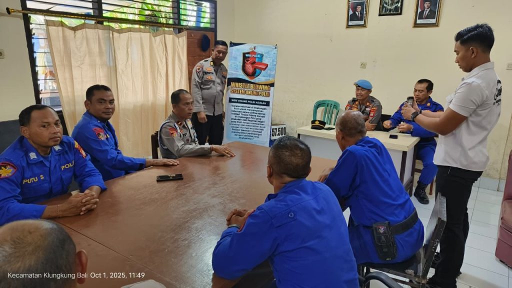 Klungkung-Si Propam Polres Klungkung melaksanakan kegiatan sosialisasi Whistle Blower System (WBS) dan SP4N LAPOR kepada personel Satuan Polairud Polres Klungkung, Kegiatan ini dipimpin langsung oleh Kasi Propam Polres Klungkung, Iptu I Komang Budiasa, didampingi Kasi Was Polres Klungkung, Akp I Gede Suparta, serta dihadiri oleh Kasat Polairud, Akp I Komang Gede Manik Jaya, S.H. 1/10