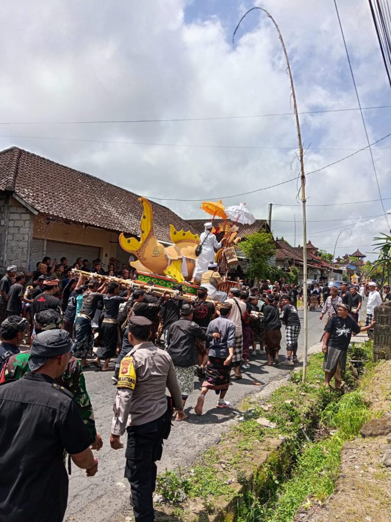 “Kehadiran Bhabinkamtibmas bersama Babinsa dan pecalang merupakan wujud nyata sinergitas tiga pilar keamanan dalam mendukung kegiatan adat dan keagamaan masyarakat. Kami berkomitmen untuk terus hadir di tengah masyarakat guna menjaga situasi kamtibmas yang aman dan kondusif,” ujar Kapolsek.