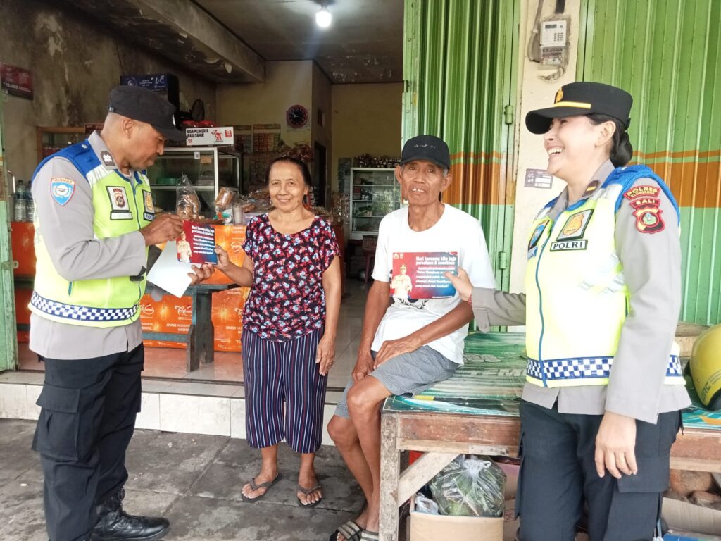 Dalam penyuluhan tersebut anggota Sub Subsatgas Solialisasi OMP 2024 Ipda Putu Nunik Sumiarti Dewi beserta tim bertatap muka dan memberikan brosur himbauan Kamtibmas dengan masyarakat di Desa Takmung, Banjarangkan, Klungkung.