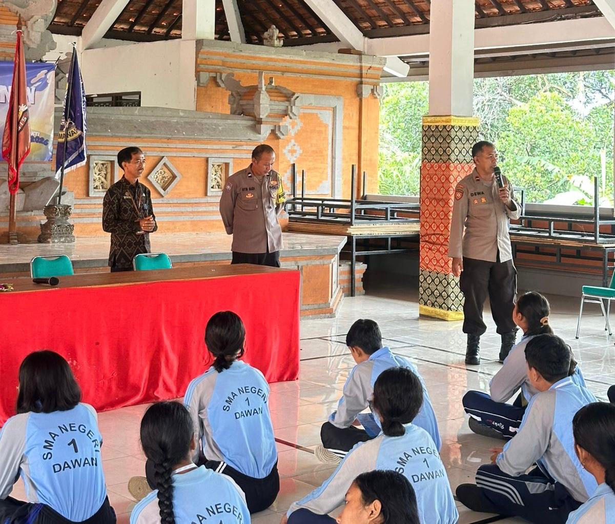 Kegiatan penyuluhan yang dipimpin oleh Kanit Binmas Polsek Dawan Ipda Dewa Gede Wiasa yang didampingi Bhabinkamtibmas Gunaksa Aipda I Nyoman Budiasa memberikan materi terkait tentang Undang-Undang Lalu Lintas dan Angkutan Jalan (UULAJ) yang bertujuan untuk meningkatkan kesadaran dan kepatuhan siswa terhadap peraturan lalu lintas.
