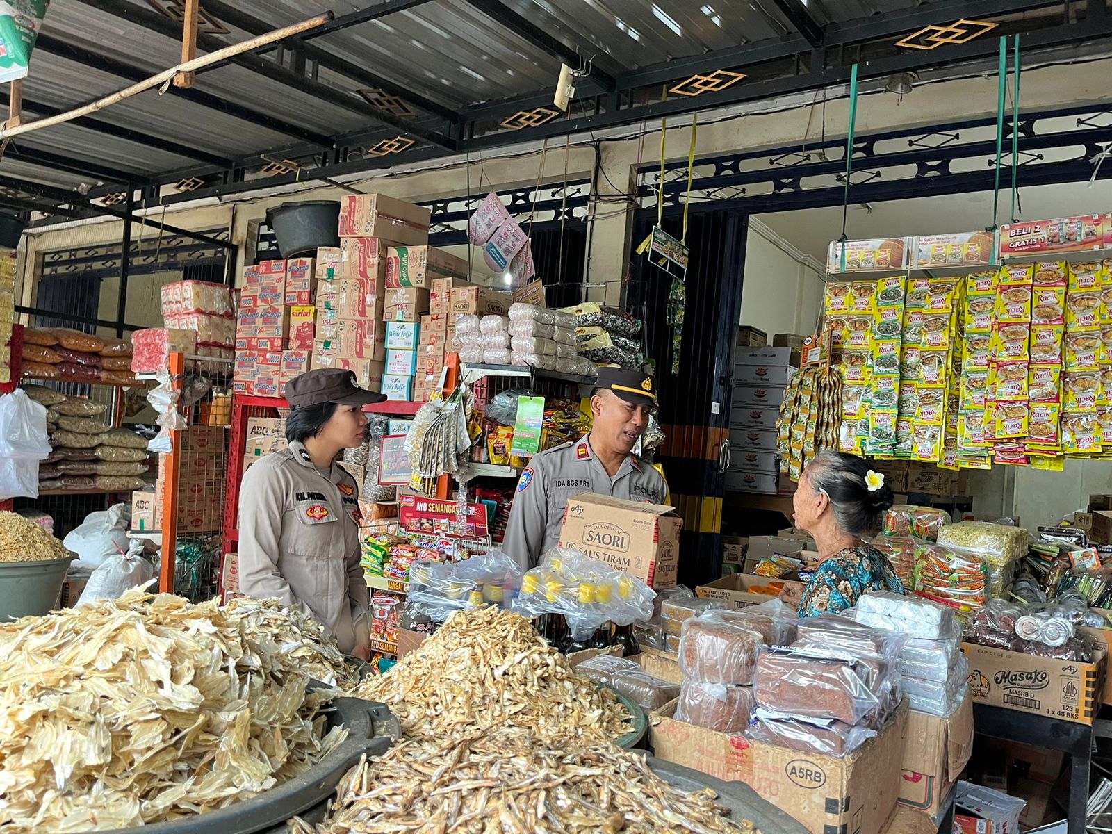Personel juga mengingatkan para pedagang untuk waspada terhadap tindak kejahatan, seperti pencurian, dan melaporkan segera jika ada hal mencurigakan kepada pihak kepolisian melalui call center 110