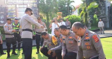 Subsatgas Dokkes Satgas Ban Ops melaksanakan pengecekan kesehatan/ cek tensi personel yang terlibat dalam operasi Ketupat Agung 2025 di Polres Klungkung (4/4/2025).