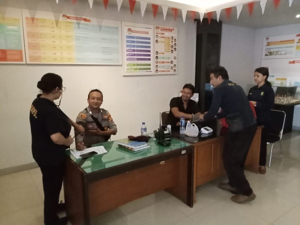 Kegiatan pemeriksaan kesehatan dilakukan meliputi pengecekan tensi darah, suhu tubuh dan pemeriksaan ringan kesehatan lainnya.