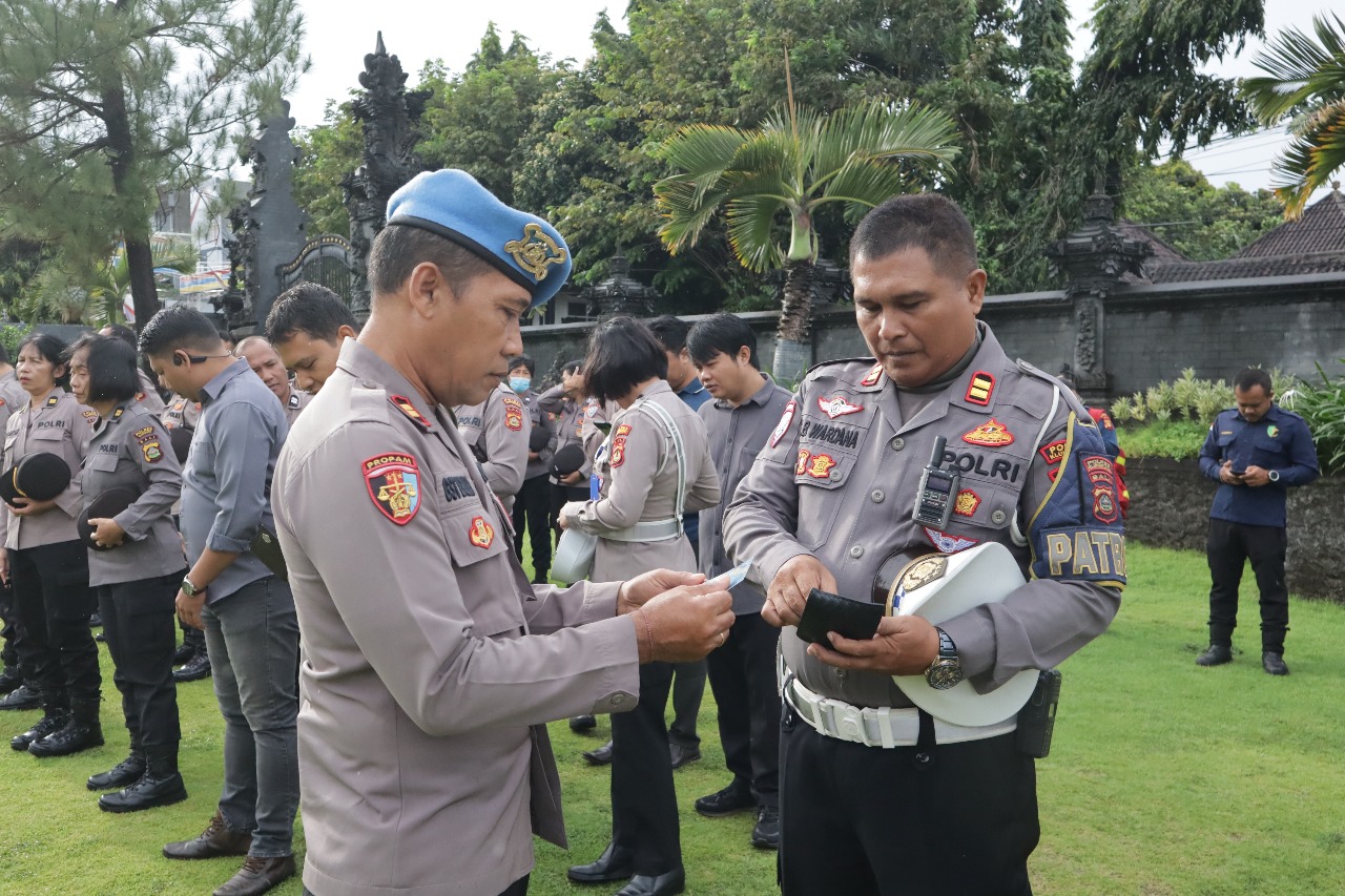 Personel Propam melaksanakan pengecekan terhadap kesiapan personel baik itu sikap tampang, serta kelengkapan administrasi dalam pelaksanaan tugas dan identitas diri.