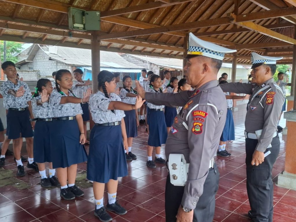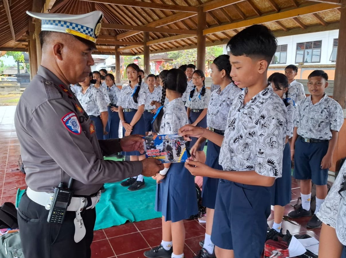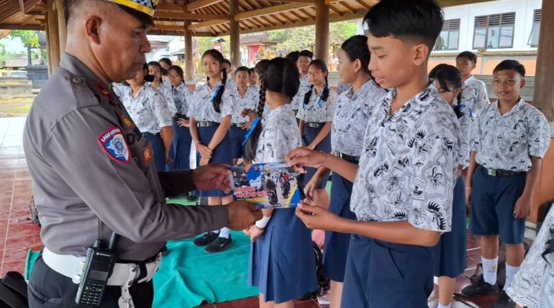 Unit Kamsel Satlantas Polres Klungkung Sosialisasikan Tertib Lalu Lintas kepada Pelajar SMPN 3 Semarapura