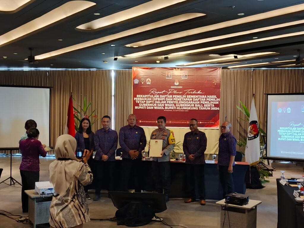 Dan Penetapan DPT Kab. Klungkung pada pemilihan Kepala Daerah serentak tahun 2024 di Kab. Klungkung berdasarkan Surat Keputusan penetapan KPU Klungkung nomor : 385 tahun 2024 dengan menetapkan jumlah DPT Kab. Klungkung sebanyak : 168.793.