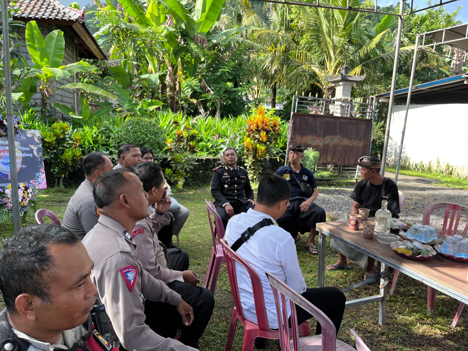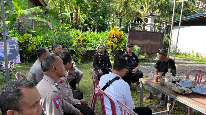Banjarangkan – Sebagai bentuk empati dan rasa turut berbelasungkawa, Kapolsek Banjarangkan AKP I Ketut Budiarsana, S.H., M.H. bersama personel dan Bhayangkari Ranting Banjarangkan melayat ke rumah duka Wakapolsek Banjarangkan IPTU I Wayan Sudira di Desa Lebu, Karangasem, (2/6),